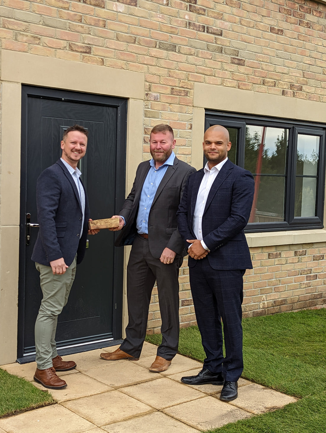 Picture shows: Steve Ruddick, Commercial Manager at McGovern, presenting the eight millionth brick sold since the company’s acquisition to Dan Levington & Nathaniel Crinson from Tandem Construction.